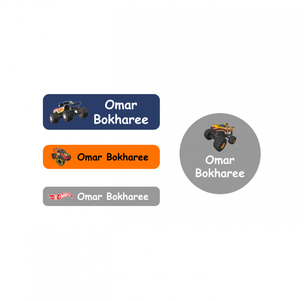 استخدمي الملصقات الكبيرة على الكتب والدفاتر، والملصقات الصغيرة على الأقلام, والملصقات المستديرة على أوعية الطعام والزمزميات.