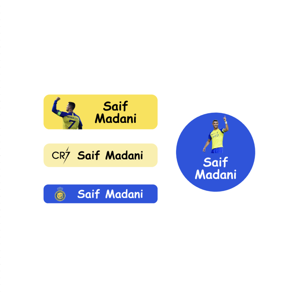 استخدمي الملصقات الكبيرة على الكتب والدفاتر، والملصقات الصغيرة على الأقلام, والملصقات المستديرة على أوعية الطعام والزمزميات.