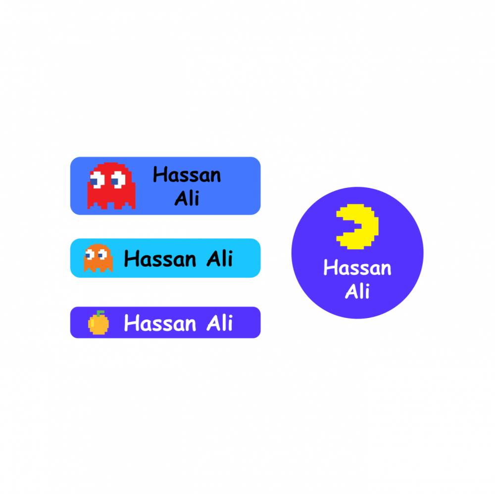 استخدمي الملصقات الكبيرة على الكتب والدفاتر، والملصقات الصغيرة على الأقلام, والملصقات المستديرة على أوعية الطعام والزمزميات.
