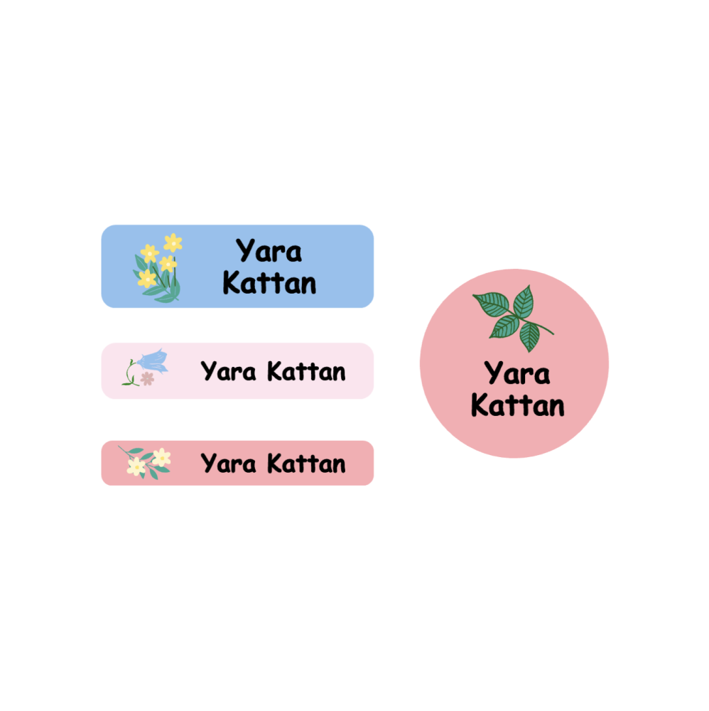 • 21 ملصق صغير للأسماء (38 × 12 ملم)