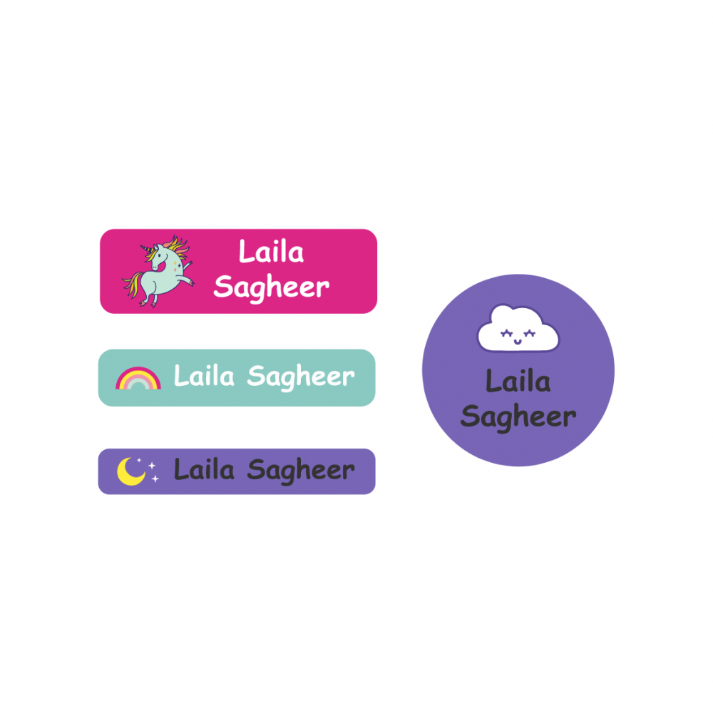 عبوة ملصقات المدرسة المتخصصة: هذه العبوة المكونة من 53 ملصق يدعك تسمي مستلزمات أطفالك المدرسية.